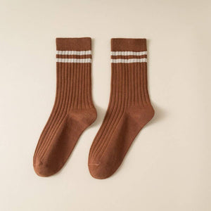WOMAN STRIPE HALF CREW THROWBACK COTTON SOCKS | 40S02076: Brown