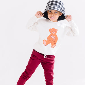 Bear Holding Heart Valentines Day Kids sweatshirt : Grey / 5/6 T