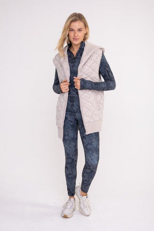 Taupe Quilted Fleece Vest with Hood